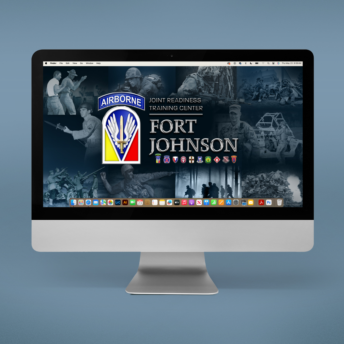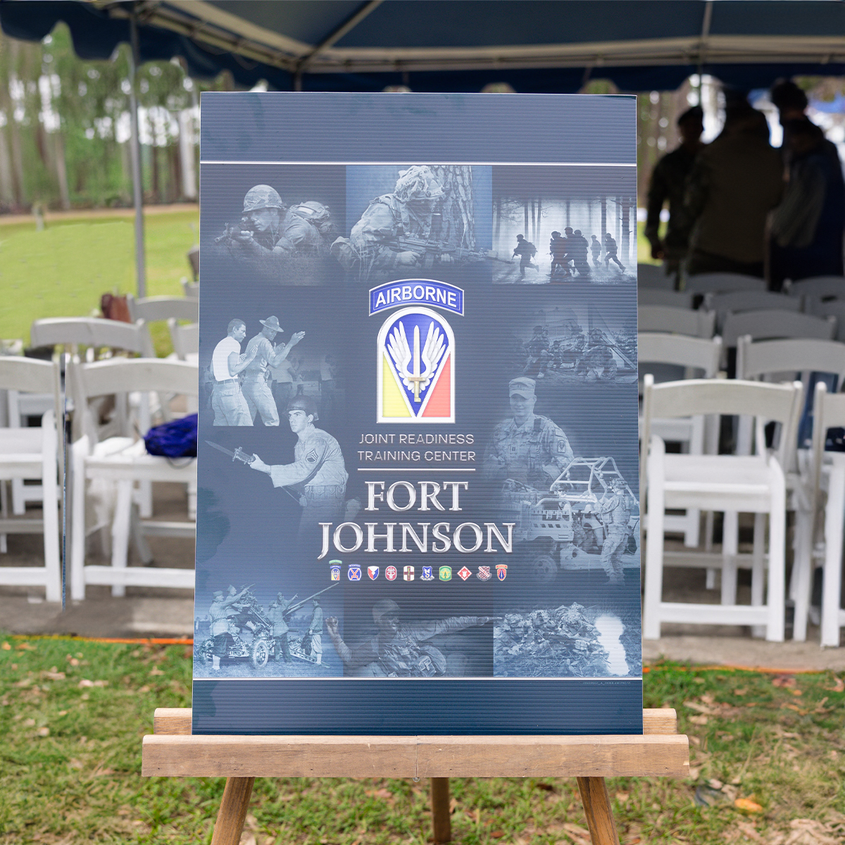 On June 13, 2023, Fort Polk was renamed Fort Johnson in honor of Sgt. William Henry Johnson. To mark the occasion we created a 17-foot banner showcasing the installation's history, accompanied by coordinating posters and digital imagery. Sgt. Johnson, a medal of honor recipient, was celebrated in a commemorative poster.