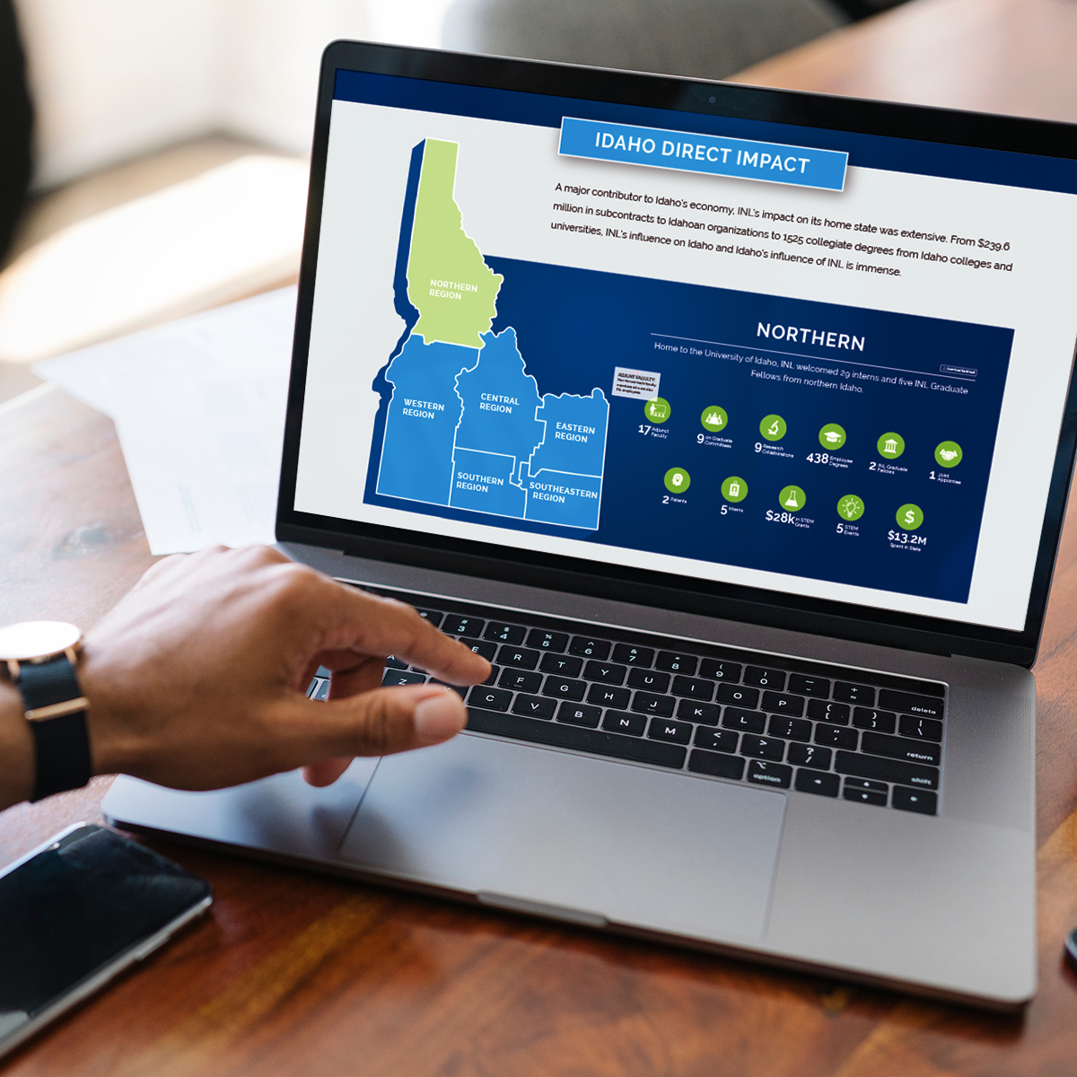 RED Inc. was tasked to create an infographic-style website to display the Idaho National Laboratory’s impact across states nationwide. This site organizes large amounts of information in a graphically pleasing way, while aligning with the lab’s brand standards.