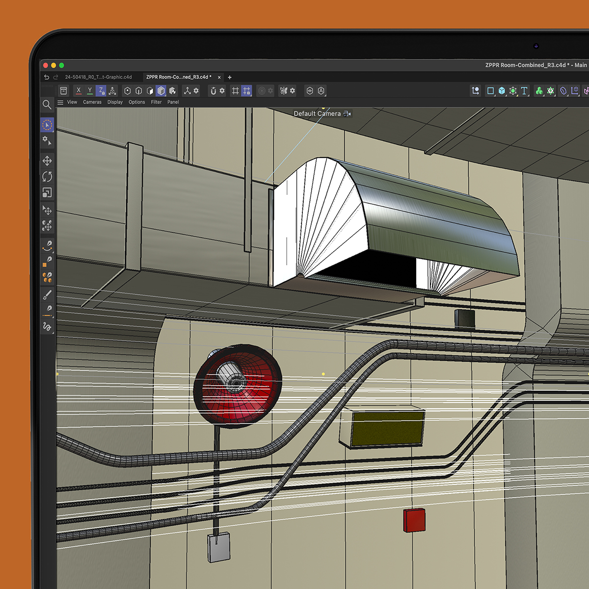 We constructed this 3D model of the LOTUS room in the ZPPR reactor entirely from photo references. A digital flythrough of the model introduces audiences to the space without having to visit the site in person.