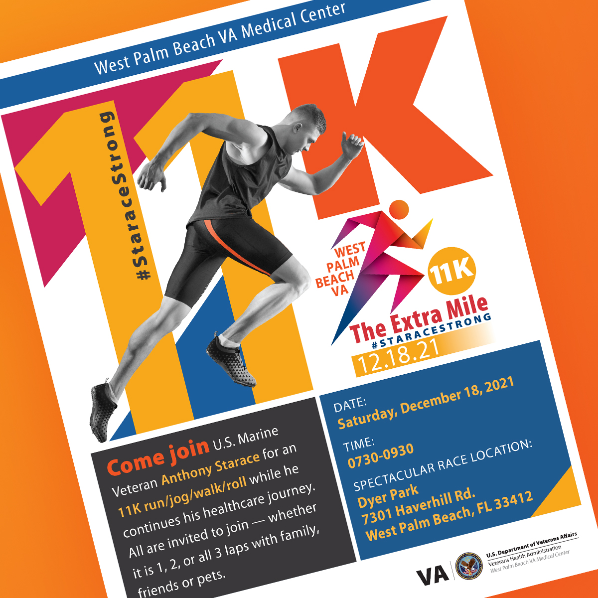 Event promotions included a social media graphic, e-board, flyer, t-shirt graphic, and signage. All were used to promote a walk/run event held in December 2021 in West Palm Beach, Florida.